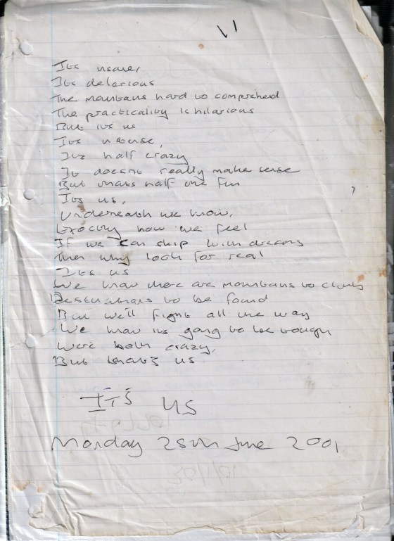 It’s Us – Written Monday 25th June 2001 (Aged 31)