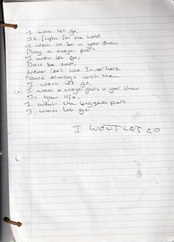 I Won’t Let Go – Written June 2001 (Aged 26)