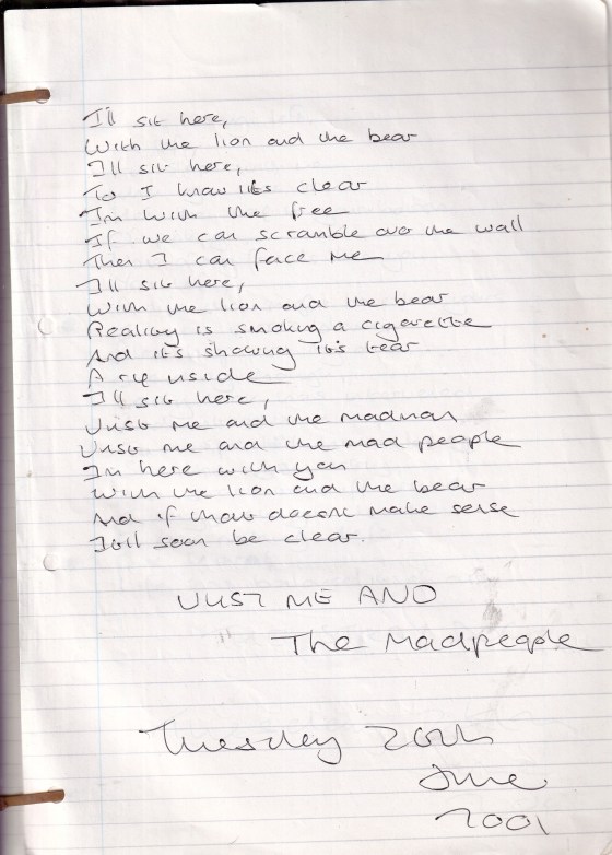 Just Me And The Mad People – Written Tuesday 26th June 2001 (Aged 26)