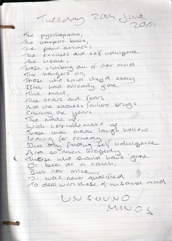 Unsound Minds – Written Tuesday 26th June 2001 (Aged 26)