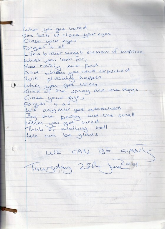 We Can Be Giants – Written Thursday 28th June 2001 (Aged 26)