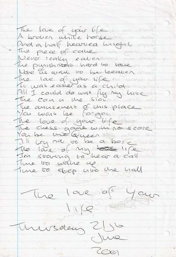 The Love of Your Life – Written Thursday 21st June 2001 (Aged 26)