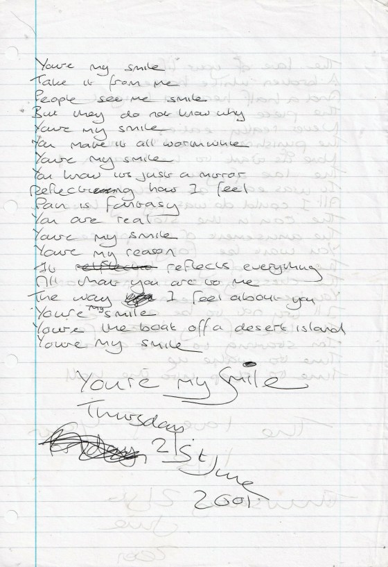 You Are My Smile – Written Thursday 21st June 2001 (Aged 26)
