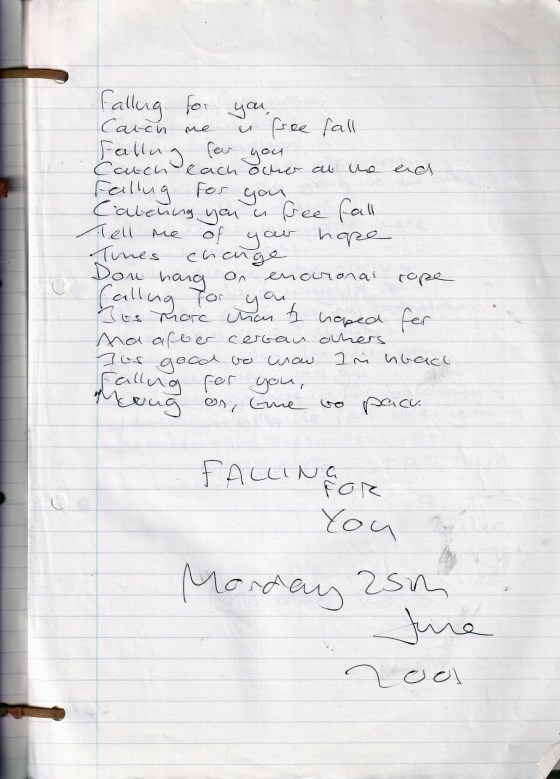 Falling For You – Written Monday June 25th June 2001 (Aged 26)