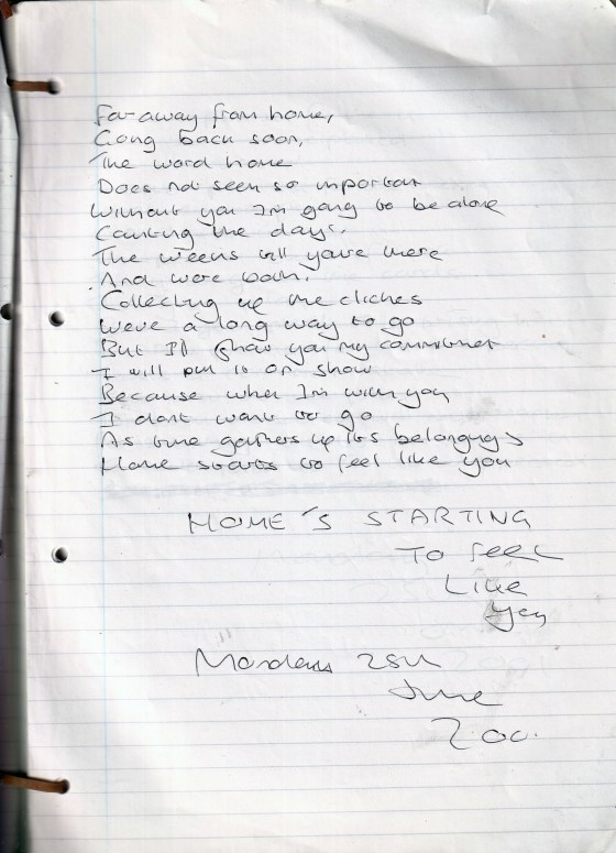 Home Is Starting to Feel Like You – Written Monday 25th June 2001 (Aged 26)