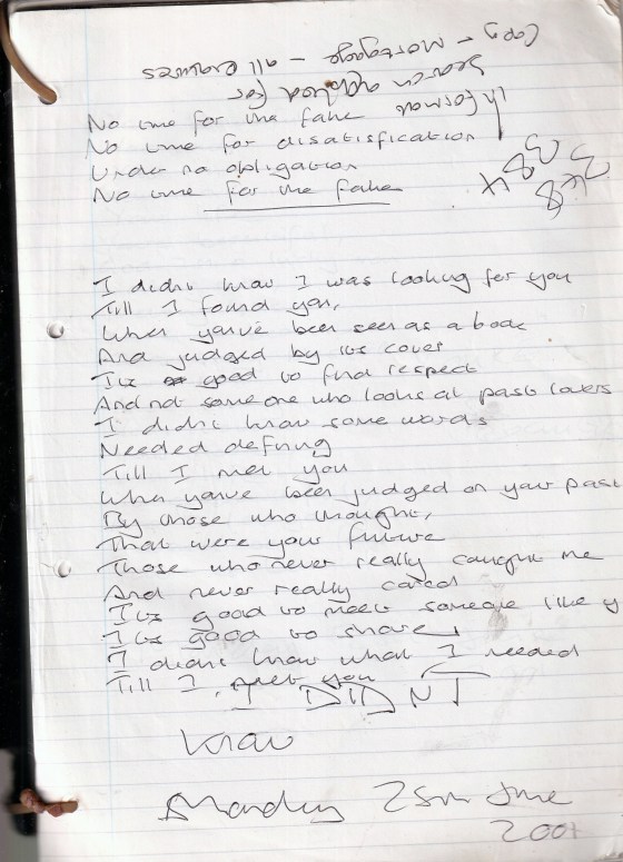 I Didn’t Know – Written Monday 25th June 2001 (Aged 26)