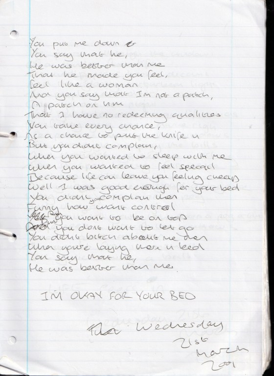 I Am Okay For Your Bed – Wednesday 21st March 2001