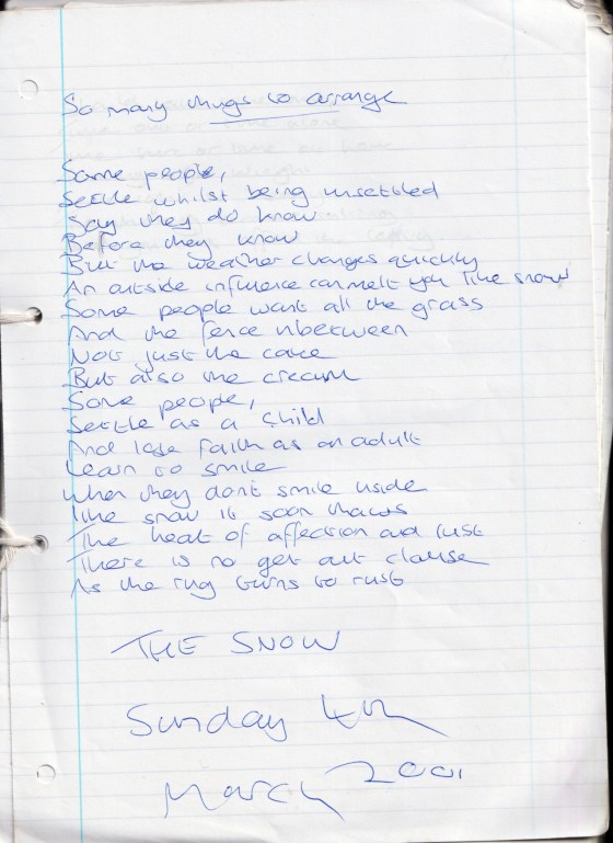 The Snow – Sunday 4th March 2001