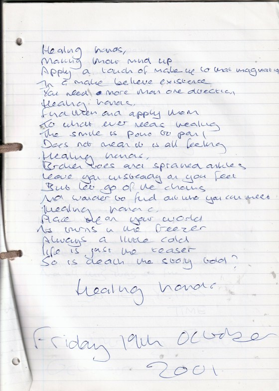 Healing Hands – Written Friday 19th October 2001 (Aged 26)