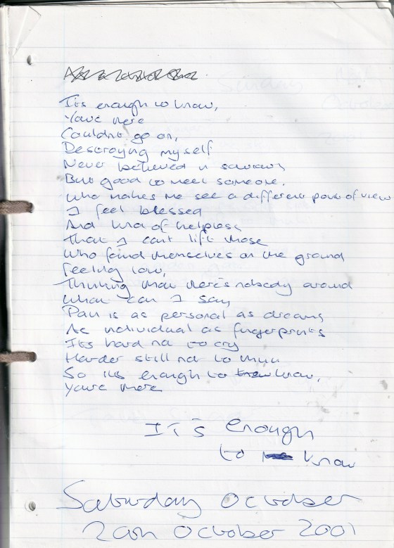 It Is Enough to Know – Written Saturday 20th October 2001 (Aged 26)