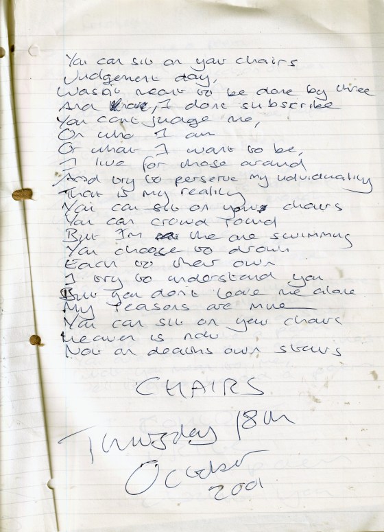 Chairs – Written Thursday 18th October 2001 (Aged 26)