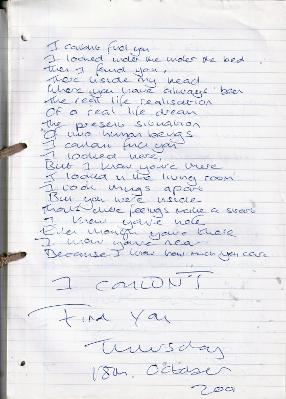 I Could Not Find You – Written Thursday 18th October 2001 (Aged 26)