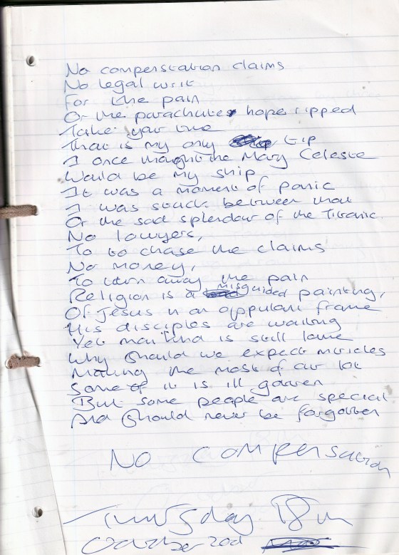 No Compensation – Written Thursday 18th October 2001 (Aged 26)