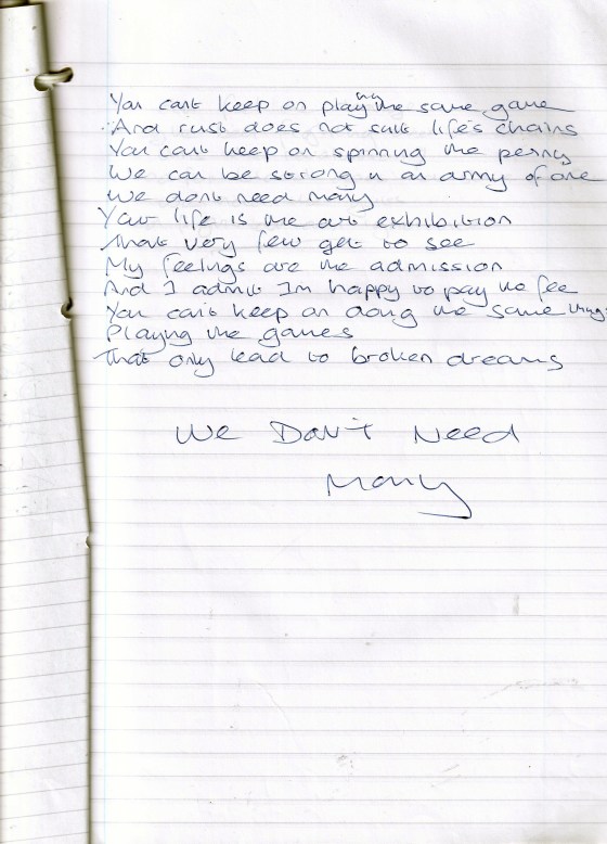We Do Not Need Many – Written September 2001 (Aged 26)