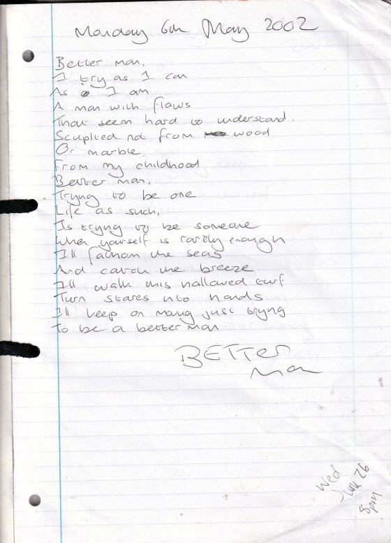 Better Man – Written Monday 6th May 2002 (Aged 27)