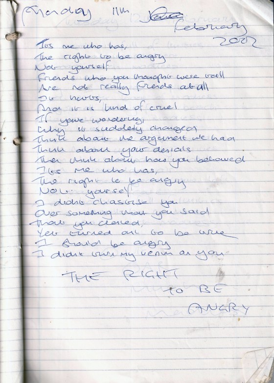 The Right To Be Angry – Written Monday 11th February 2002 (Aged 26)