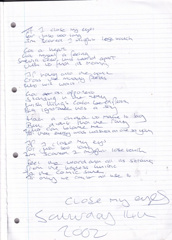 Close My Eyes – Written Saturday 14th December 2002 (Aged 22)