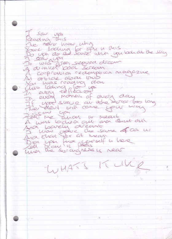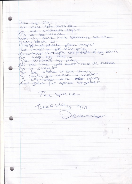 The Space – Written Tuesday 9th December 2002 (Aged 27)