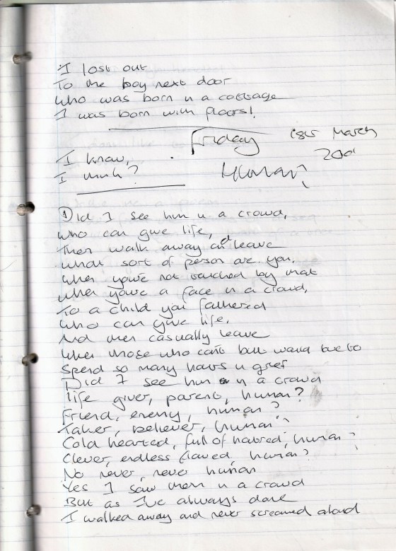 Human? – Written Friday 1st March 2002 (Aged 27)