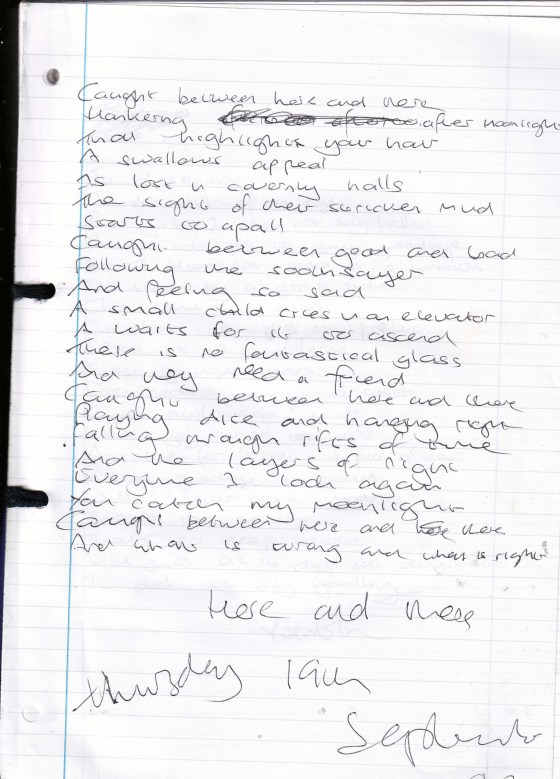 Here and There – Written Thursday 19th September 2002 (Aged 27)