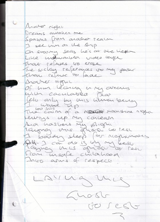Laying This Ghost To Rest – Written September 2002 (Aged 27)