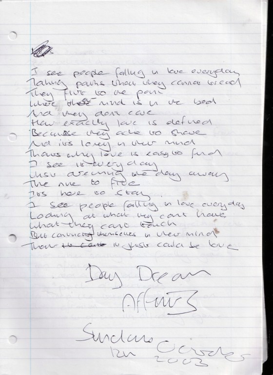 Day Dream Affairs – Written Sunday 12th October 2003 (Aged 28)
