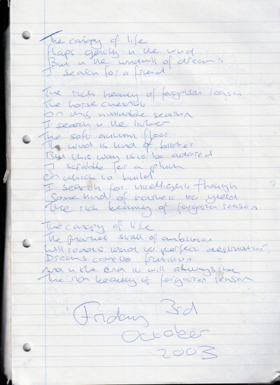 Rich Beauty of Forgotten Reason – Written Friday 3rd October 2003 (Aged 28)