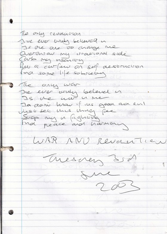 War and Revolution – Written Thursday 3rd June 2003 (Aged 28)