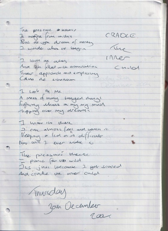 Cradle The Inner Child – Written Thursday 30th December 2004 (Aged 29)