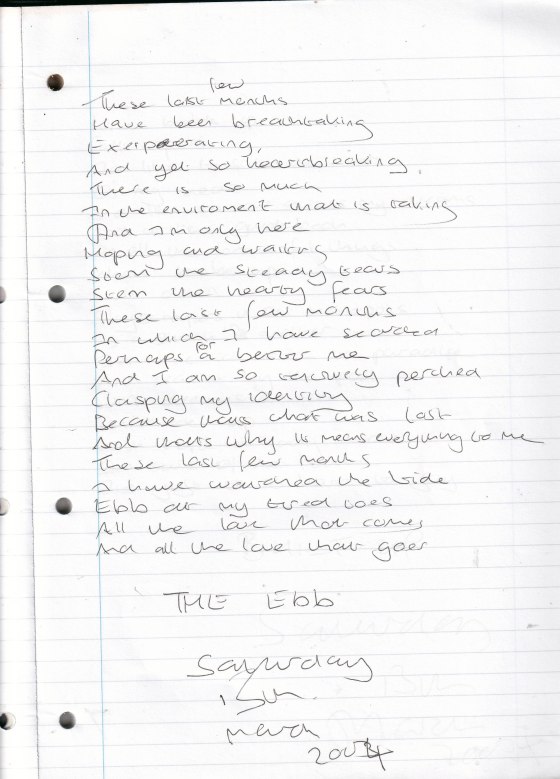 Ebb – Written Saturday 15th March 2004 (Aged 29)