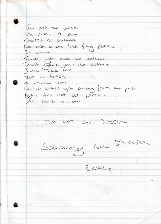I Am Not The Person – Written Saturday 6th March 2004 (Aged 29)