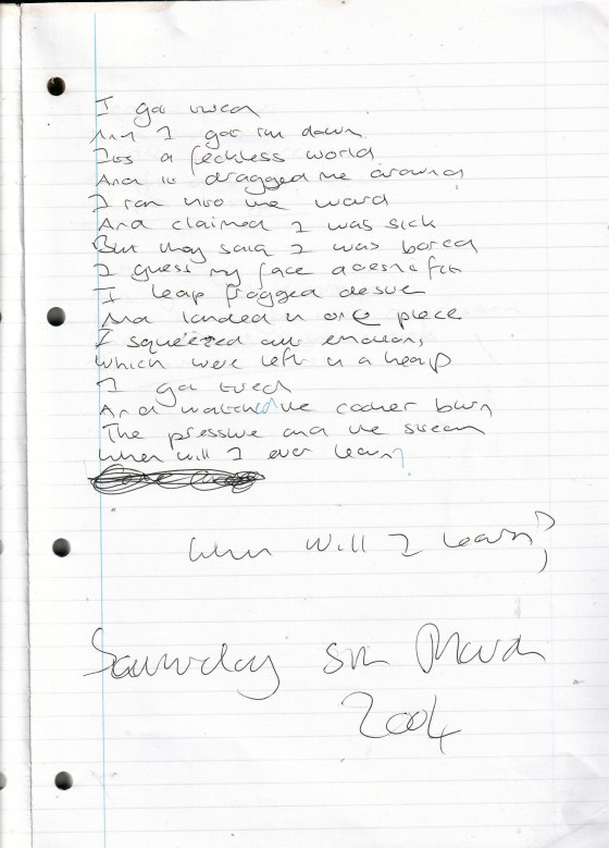 When Will I Learn? – Written Saturday 5th March 2004 (Aged 29)