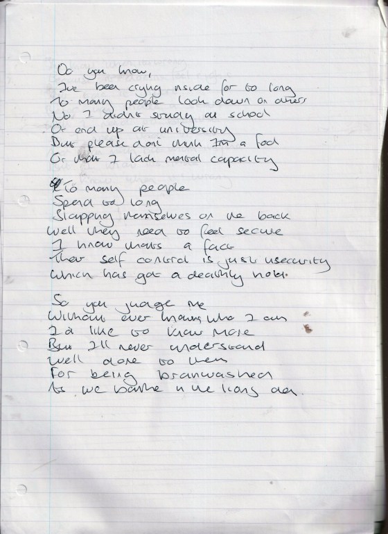 Tearing Me Up Inside – Written November 2004 (Aged 29)