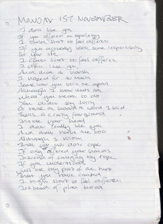 Let Myself Down Again – Written Monday 1st November 2004 (Aged 29)