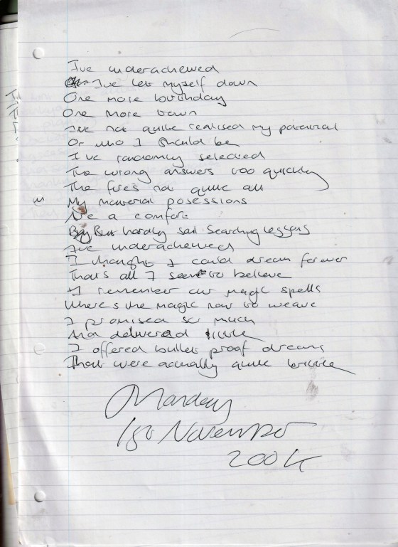 Another Rush Of Inspiration – Written Monday 1st November 2004 (Aged 29)