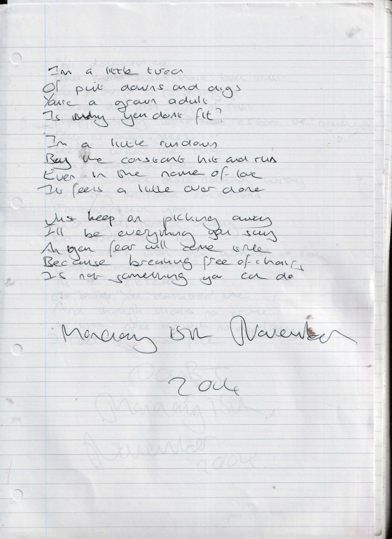Encore – Written Monday 1st November 2004 (Aged 29)