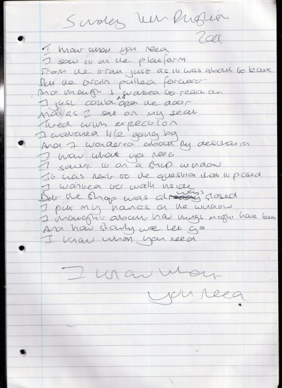 I Know What You Need – Written Sunday 14th August 2005 (Aged 30)