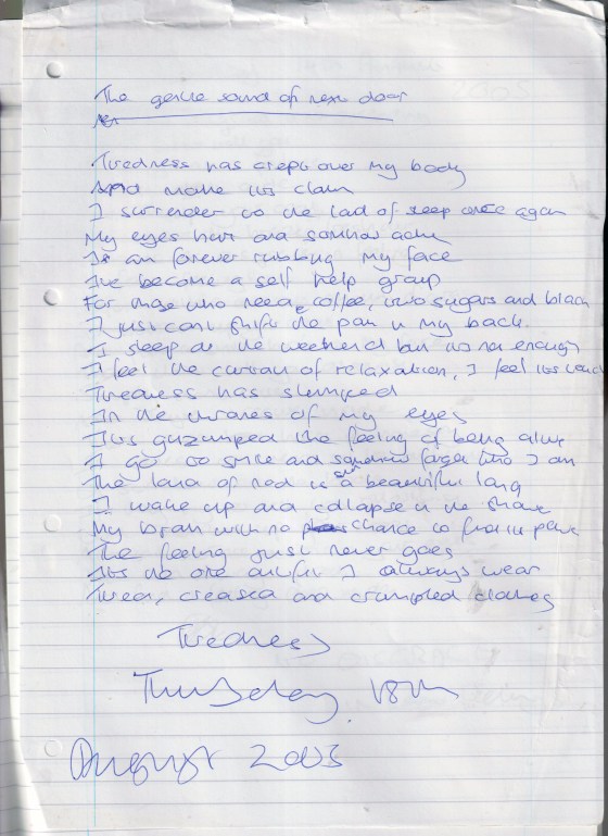 Tiredness – Written Thursday 18th August 2005 (Aged 30)