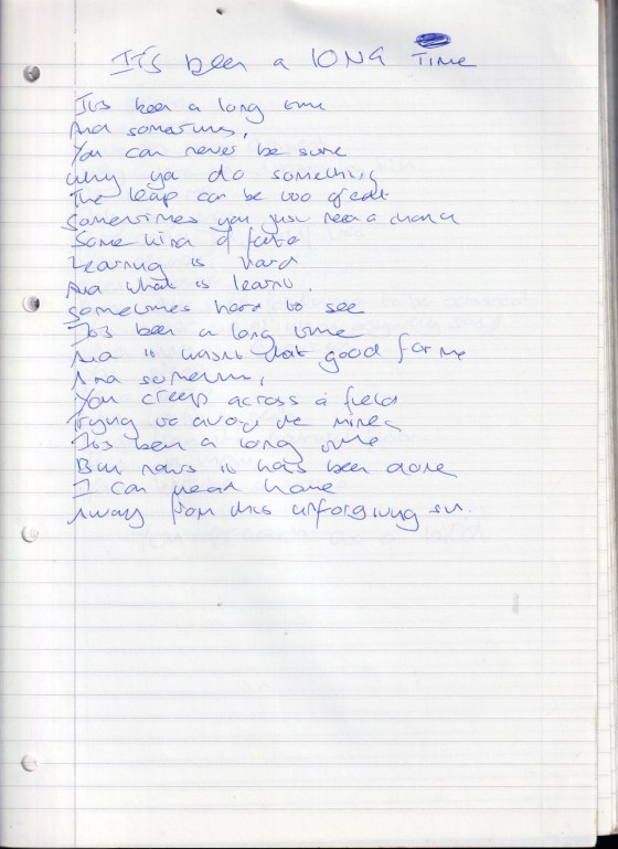 It Has Been a Long Time – Written April 2005 (Aged 30)