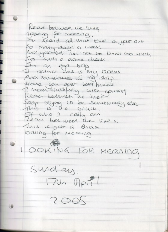 Looking for Meaning – Written Sunday 17th April 2005 (Aged 30)
