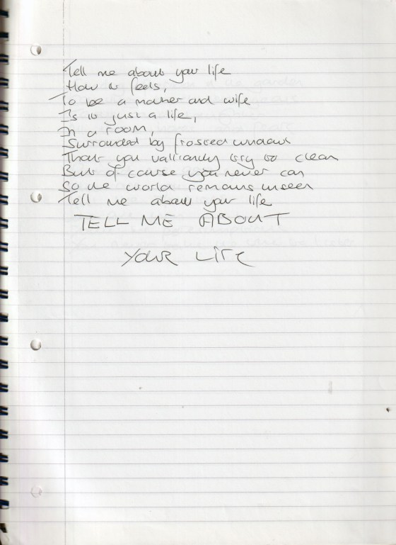 Tell Me About Your Life – Written April 2005 (Aged 30)