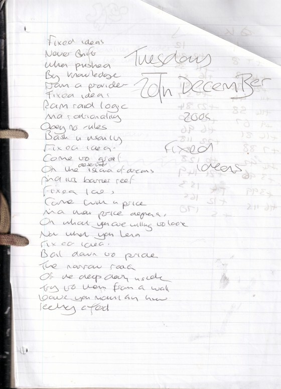Fixed Ideas – Written Tuesday 20th December 2005 (Aged 30)
