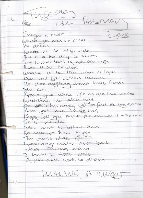 Imagine a River – Written Tuesday 15th February 2005 (Aged 29)