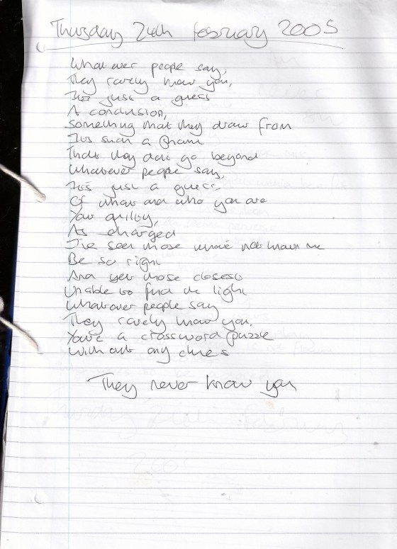 They Never Know You – Written Thursday 24th February 2005 (Aged 29)