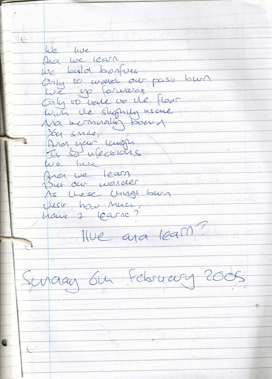 Live and Learn? – Written Sunday 6th February 2005 (Aged 29)