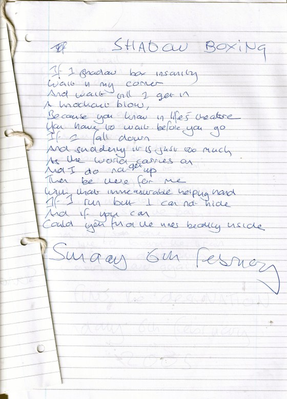 Shadow Boxing – Written Sunday 6th February 2005 (Aged 29)