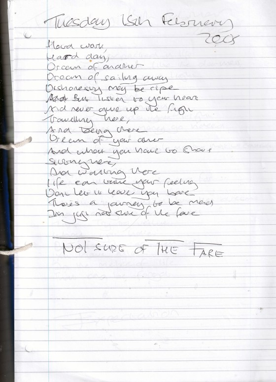 Not Sure of the Fare – Written Tuesday 15th February 2005 (aged 29)