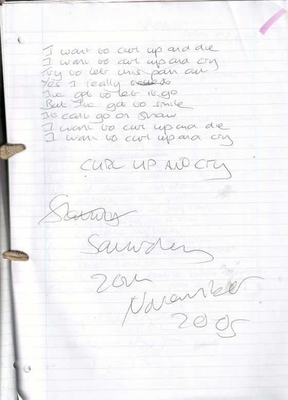 Curl Up and Cry – Written Saturday 26th November 2005 (Aged 30)