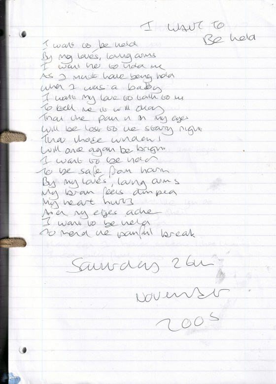I Want to Be Held – Written Saturday 26th November 2005 (Aged 30)