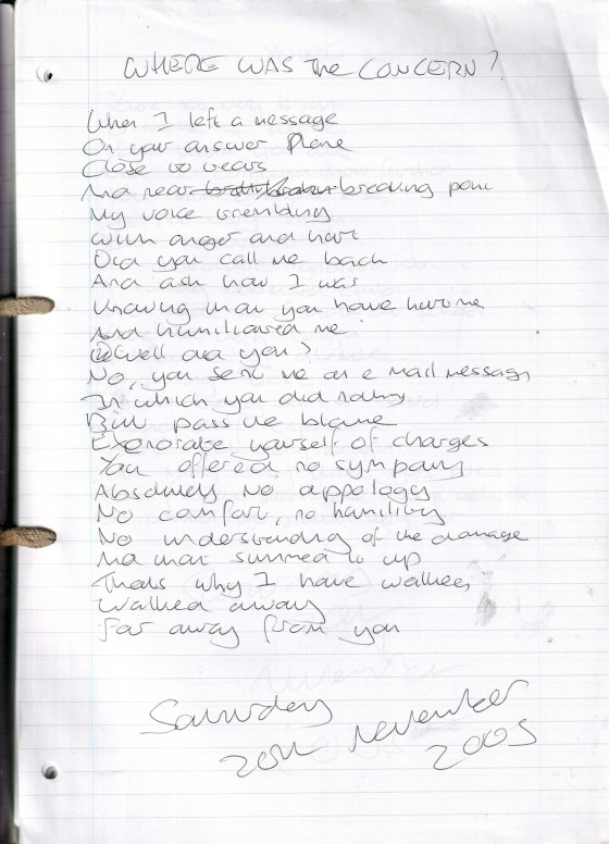 Where Was the Concern? – Written Saturday 26th November 2005 (Aged 30)